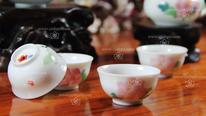 手绘釉下五彩牡丹茶具
