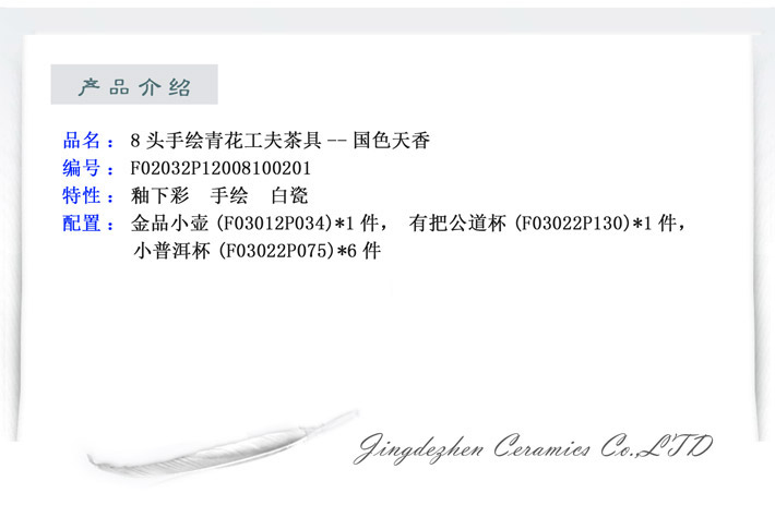 8头手绘青花时光茶具天姿国色