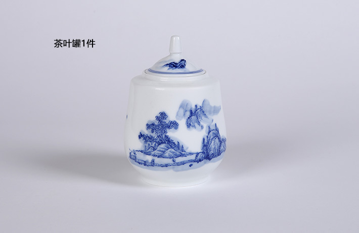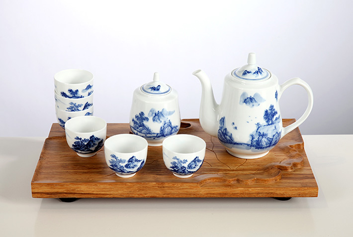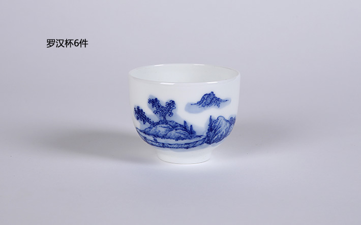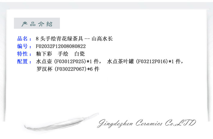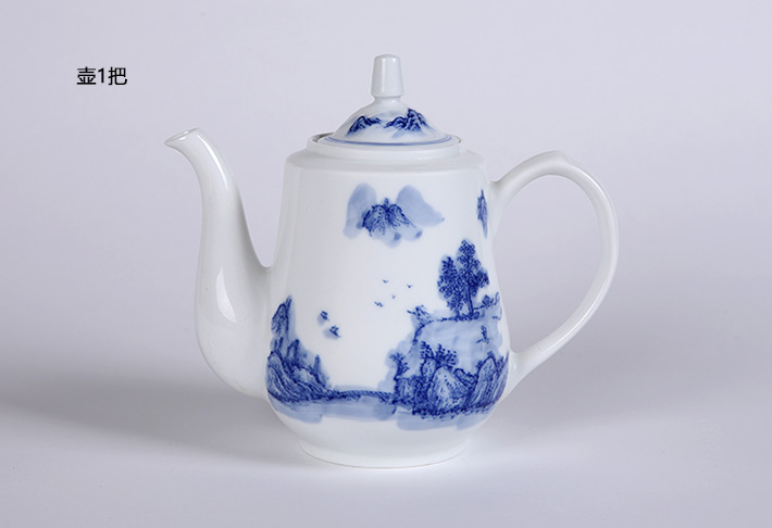 8头手绘青花绿茶具山高水长