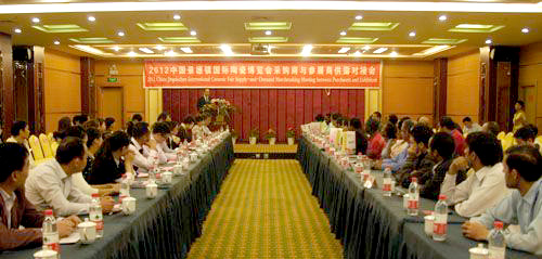 10月18日下昼,,,,,,由瓷博会、省BG电子官网公司主理的“2012年中国景德镇国际BG电子官网展览会采购商与参展企业对接会”在开门子三楼聚会室举行。。。。。。。。来自10余个国家的40家采购商以及由瓷博会凭证采购需求挑选出来的55家参展商加入了此次对接聚会。。。。。。。。副市长张春萍出席聚会并致辞。。。。。。。。