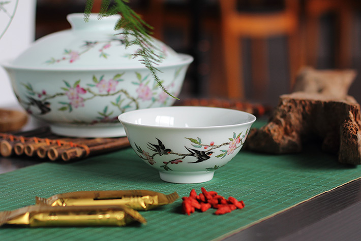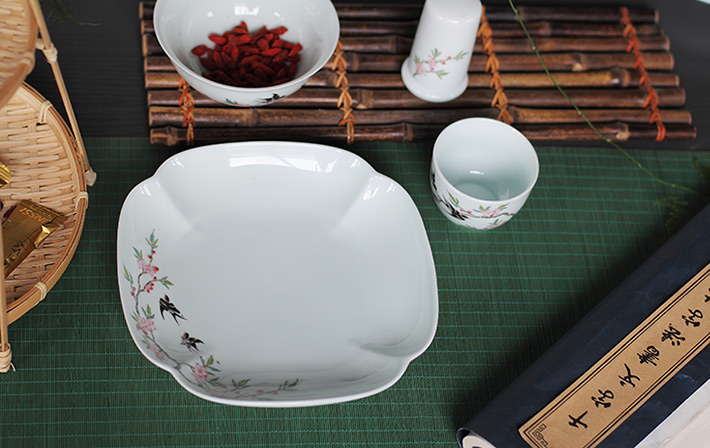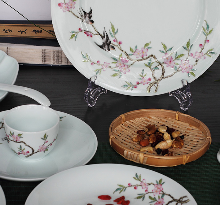 36头青釉中餐具--燕子桃花