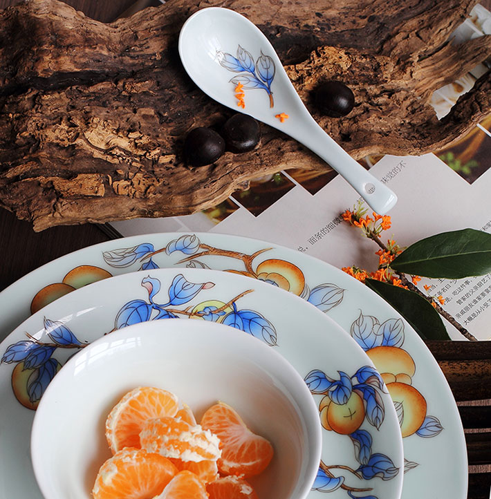 36头青釉手绘中餐具--事事如意