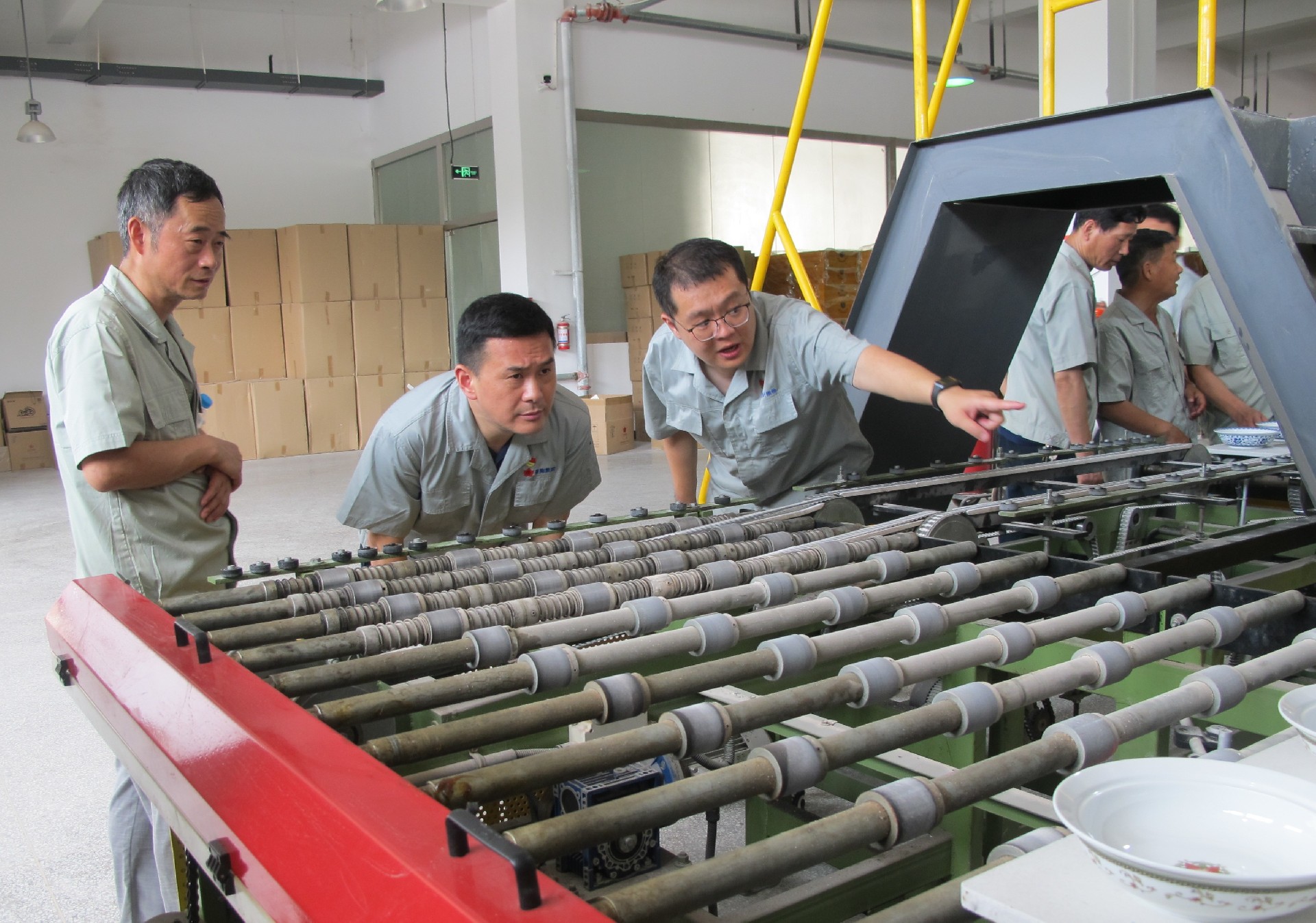 在生产车间调研中,,,,,,,邓景扬先后下到各个生产工序现场,,,,,,,从质料、模子、成型、烧炼到彩绘车间,,,,,,,对每个工序都举行了详细相识,,,,,,,重点相识了红叶一厂的整体生产能力及现状。 。。。 。。。。