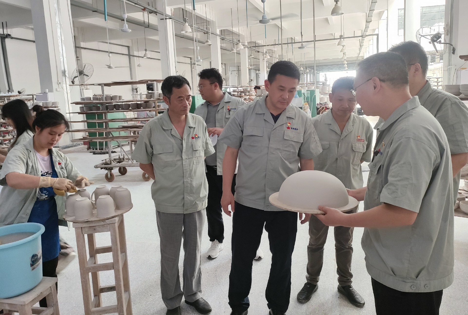 6月1日下昼,,,,,,,景陶集团党委书记、董事长邓景扬到红叶公司一厂调研,,,,,,,集团副总司理陈渊、红叶公司总司理兼一厂厂长章彧陪同。 。。。 。。。。