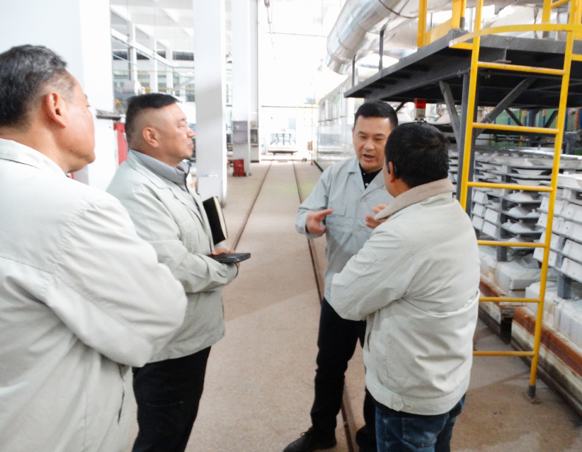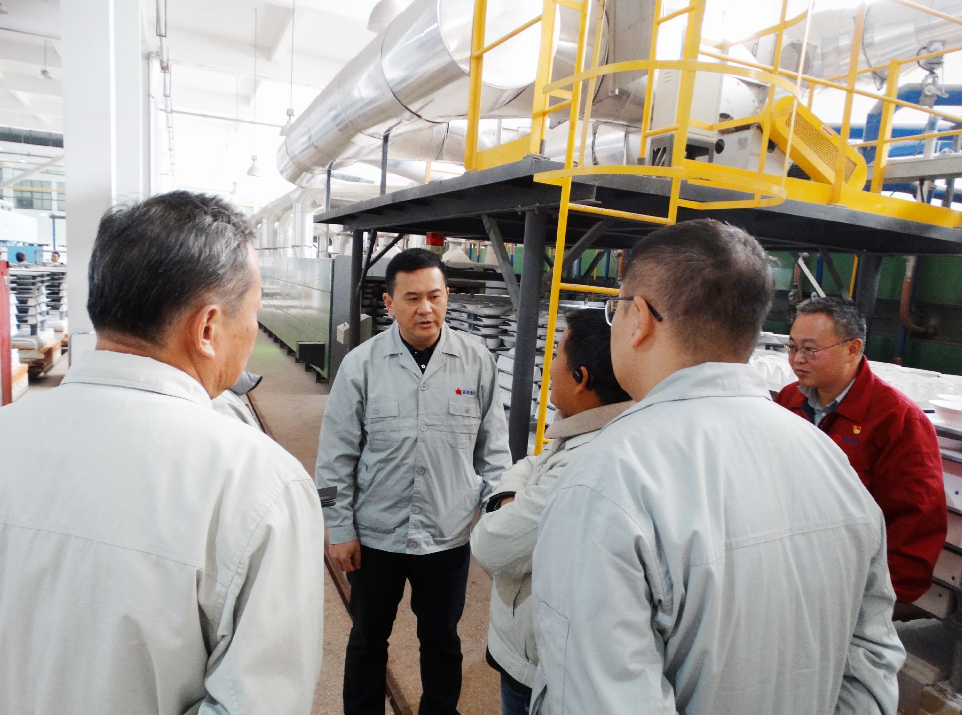 为深入学习宣传贯彻习近平总书记考察江西主要讲话精神,,,,, ,,,落实好省委、市委学习推广“四下下层”的有关要求,,,,, ,,,进一步推动集团主题教育走深走实。 。。。。1127日,,,,, ,,,景陶集团党委书记、董事长邓景扬深入挂点联系点红叶公司一厂开展“四下下层”运动。 。。。。集团党委委员、工会主席邓必春、组织人力资源部部长薛景玉等人随同,,,,, ,,,红叶公司总司理章彧、红叶公司党总支专职副书记李俊、红叶公司副总司理邱镇勇、一厂副厂长刘迅速陪同。 。。。。