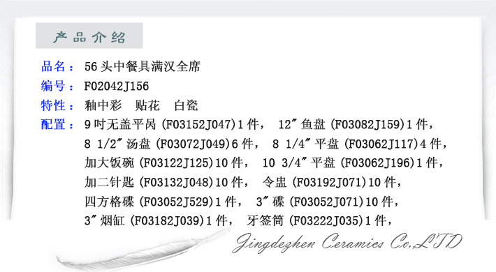 56头中餐具满汉全席